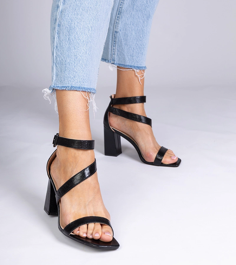 Čierne sandále na vysokom opätku Tesli