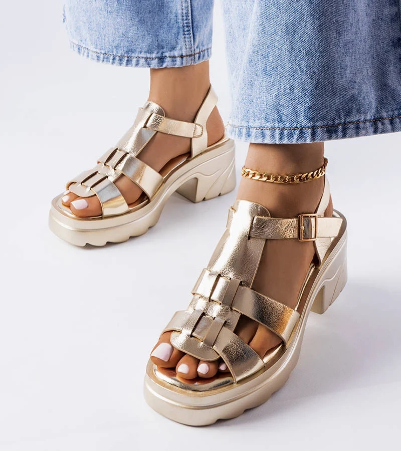 Zlaté sandále Gougeon na nízkom podpätku
