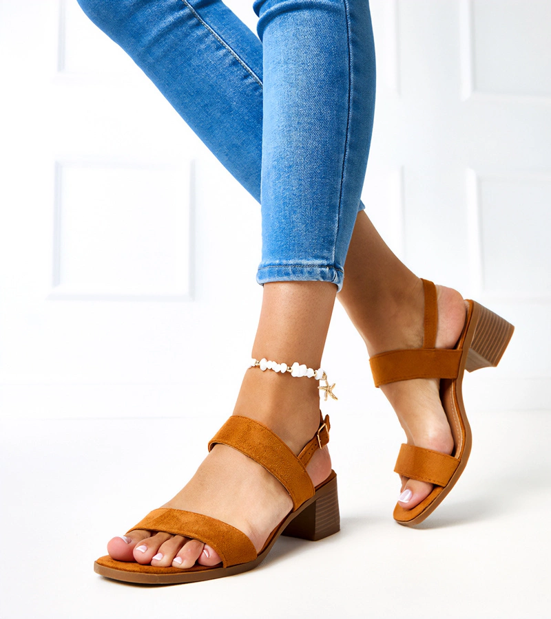 Hnedé sandále na podpätku zdobené prackou Elevira