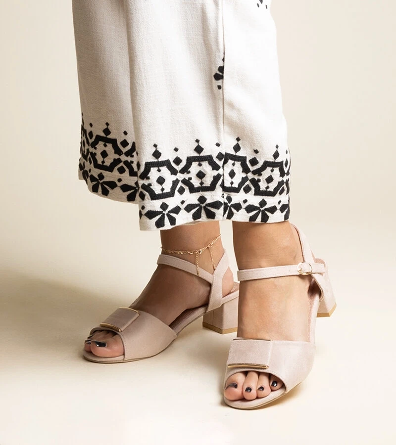Sandaľky na podpätku s ozdobnou volánikom Mukaram