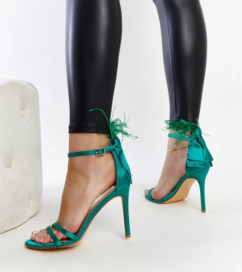 Zelené lesklé sandále Delinda s remienkami na podpätku