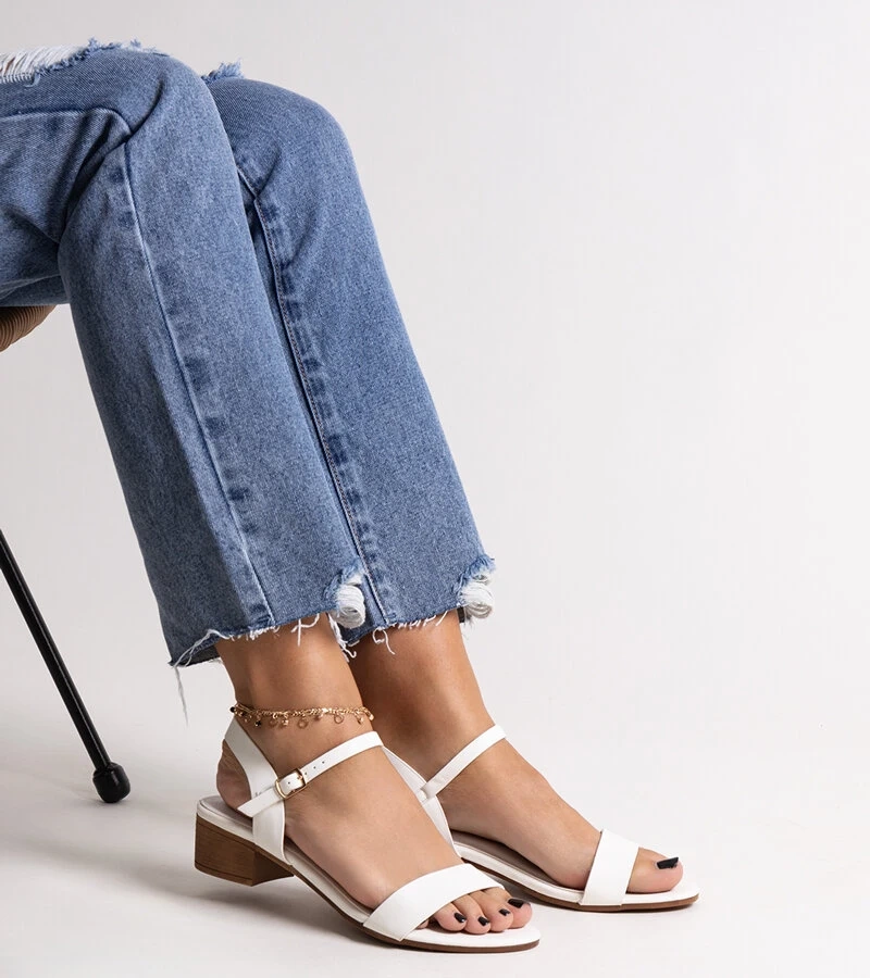 Biela sandále na nízkom podpätku Rudaina