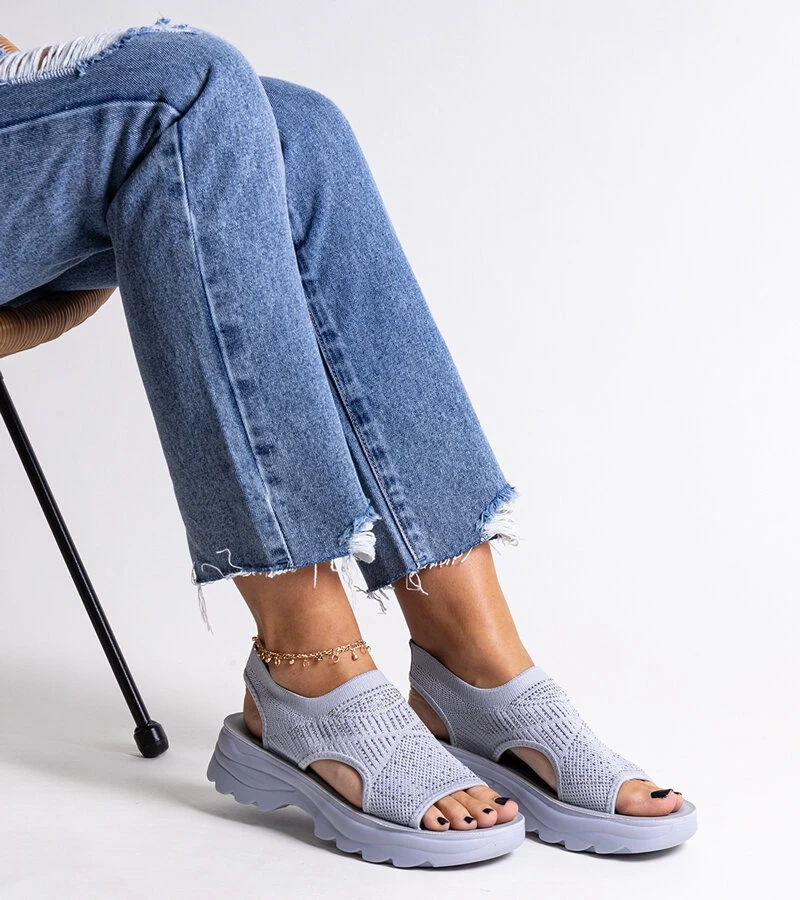 Šedé textilné sandále na platforme so zirkónmi Delmare