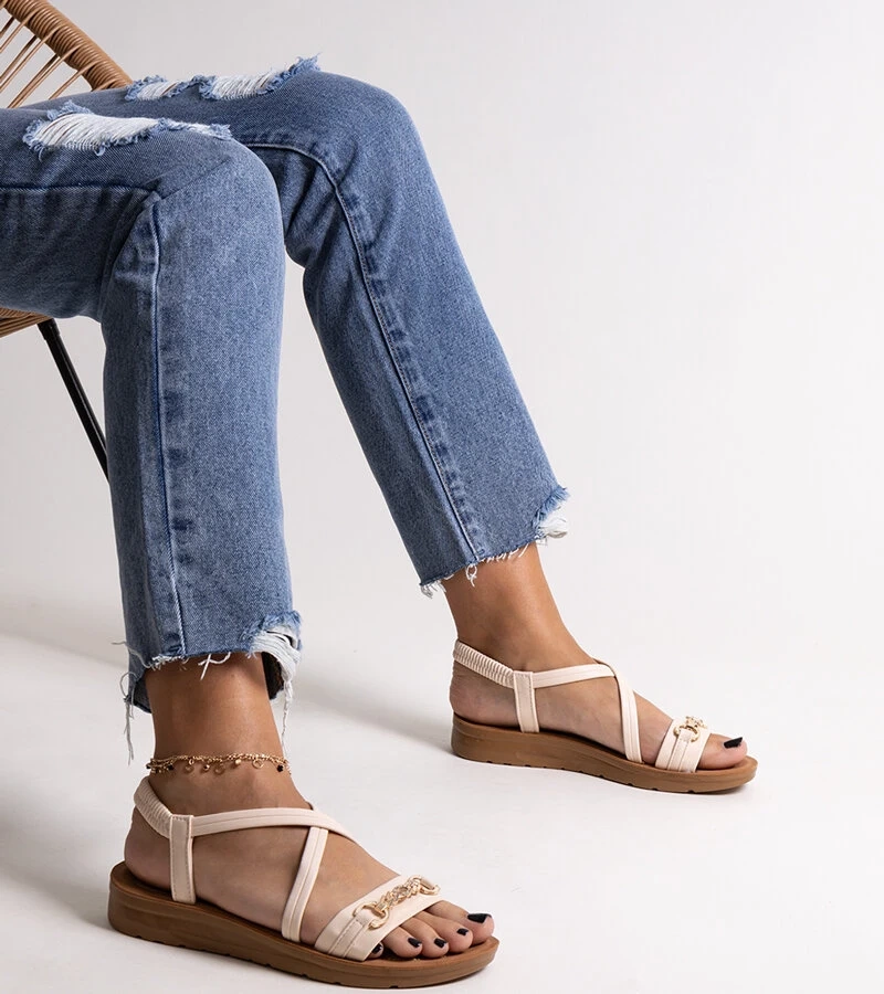 Bežové sandále na nízkom podpätku s Hornerovou sponou