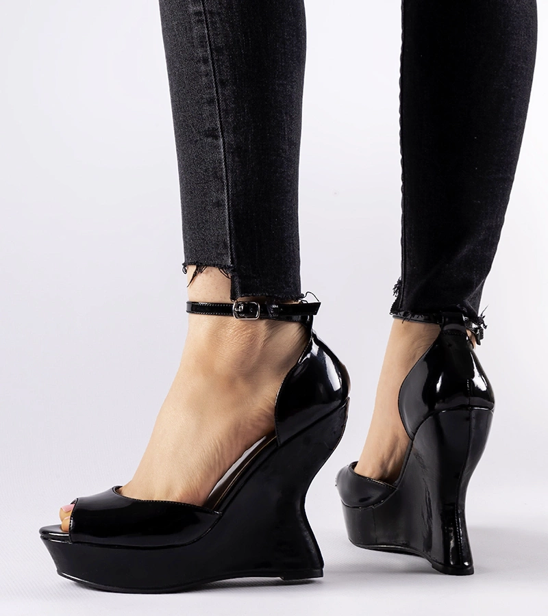 ( množstvo produktov: 1252 )Čierne lakované sandále na klinovej podrážke Flangan