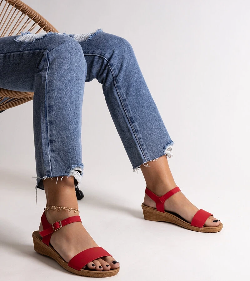Červené sandále na geometrickom klinovom podpätku Kokkes