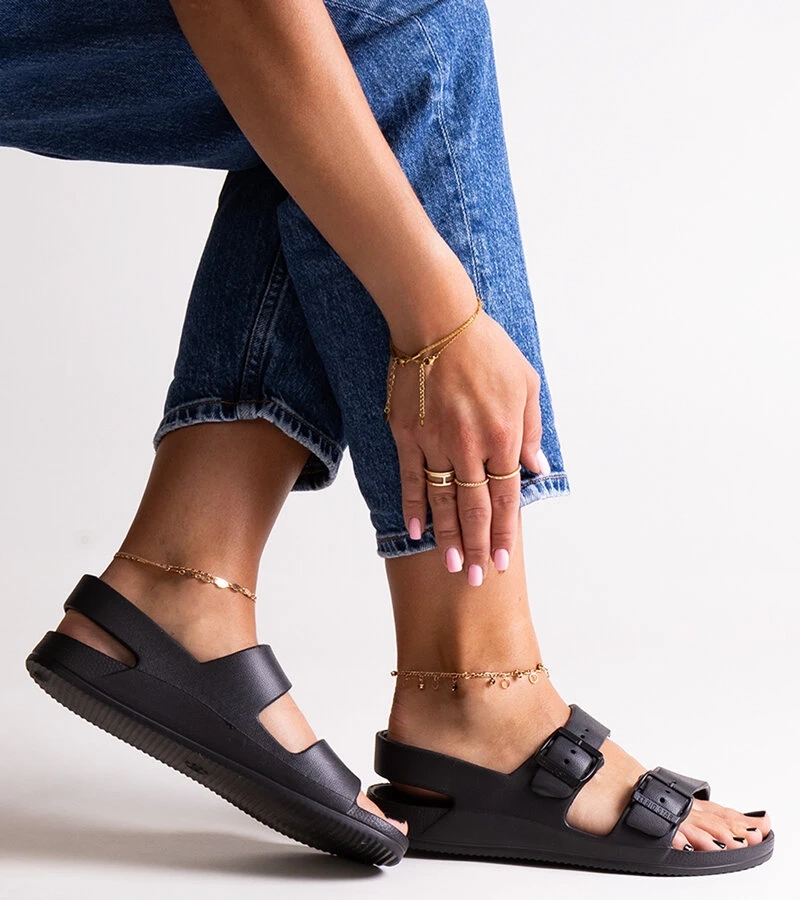 Čierne sandále na nízkom podpätku Teyla na zosuvanie