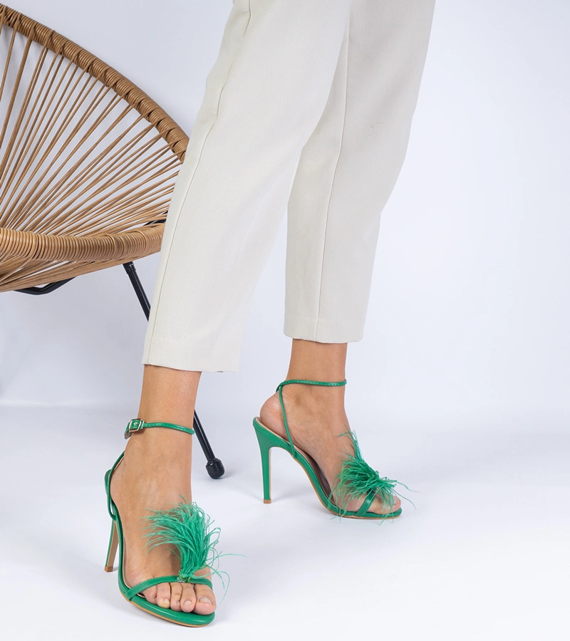 Zelené sandálky na podpätku s pierkami Arisat