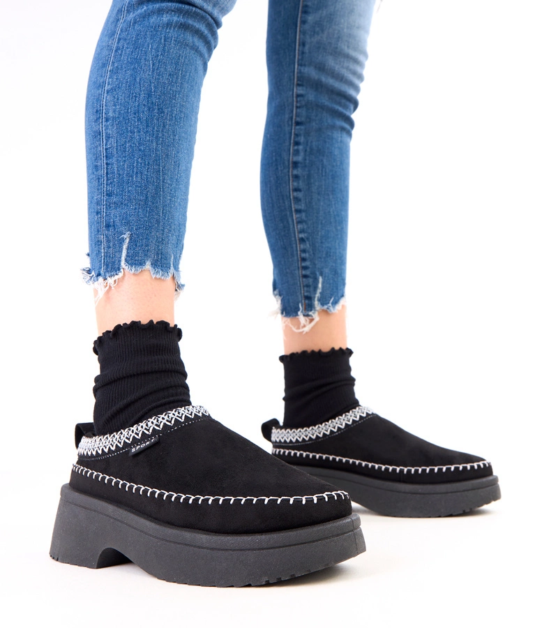 Čierne klasické šľapky na podpätku z ekosemišu Risana