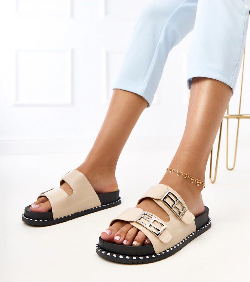 Béžové šľapky zdobené výrezmi Ragos