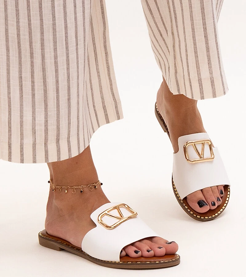 Pantofle na nízkom podpätku s dekoratívnou sponkou Luara