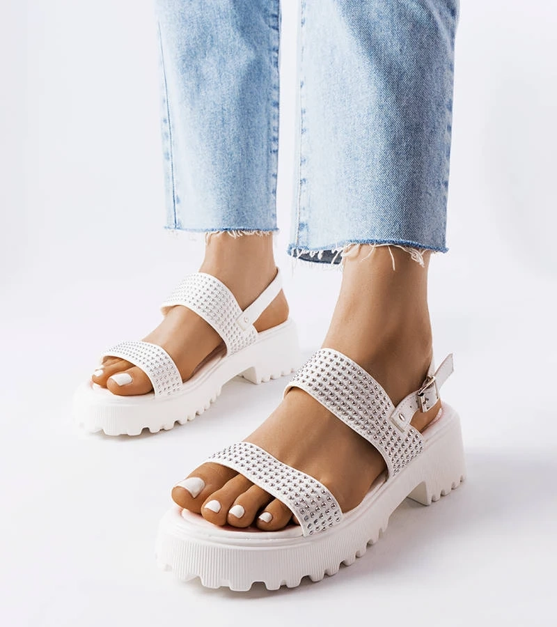 Biele žabky s ryhovaním a zirkónmi Anapor