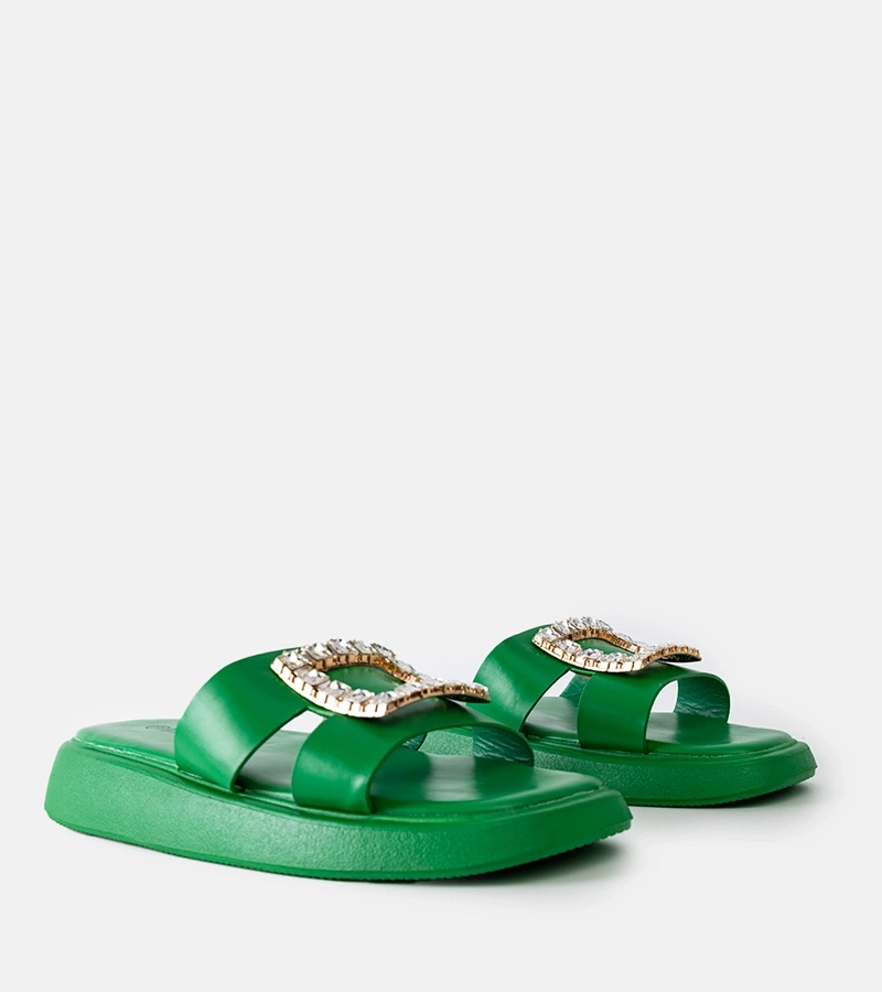 Masívne béžové šľapky s ozdobnou podrážkou Nibalie