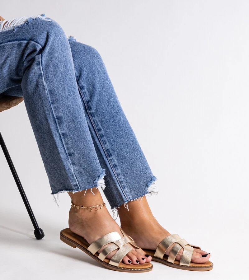 Zlaté klasické šľapky s ozdobami Umayma