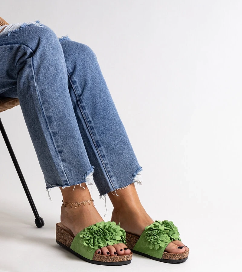 Zelené žabky s kvetmi na platforme Apolonia