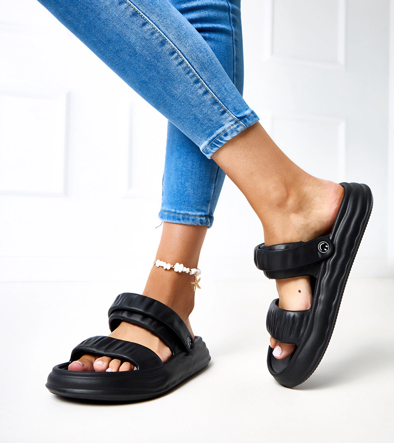 Čierne šľapky s ozdobnou sponou od Rochaela