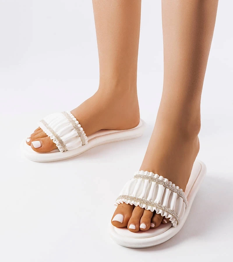 Biele žabky s ryhovaním a zirkónmi Anapor