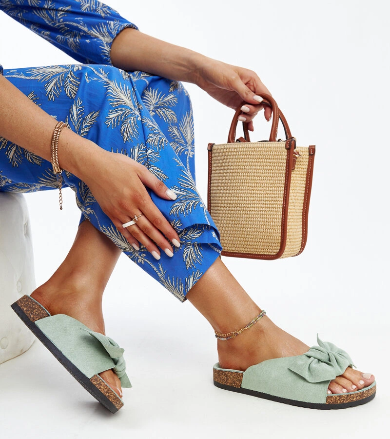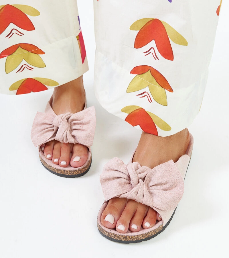 Červené kvetinové žabky s korkovou podrážkou Anjali