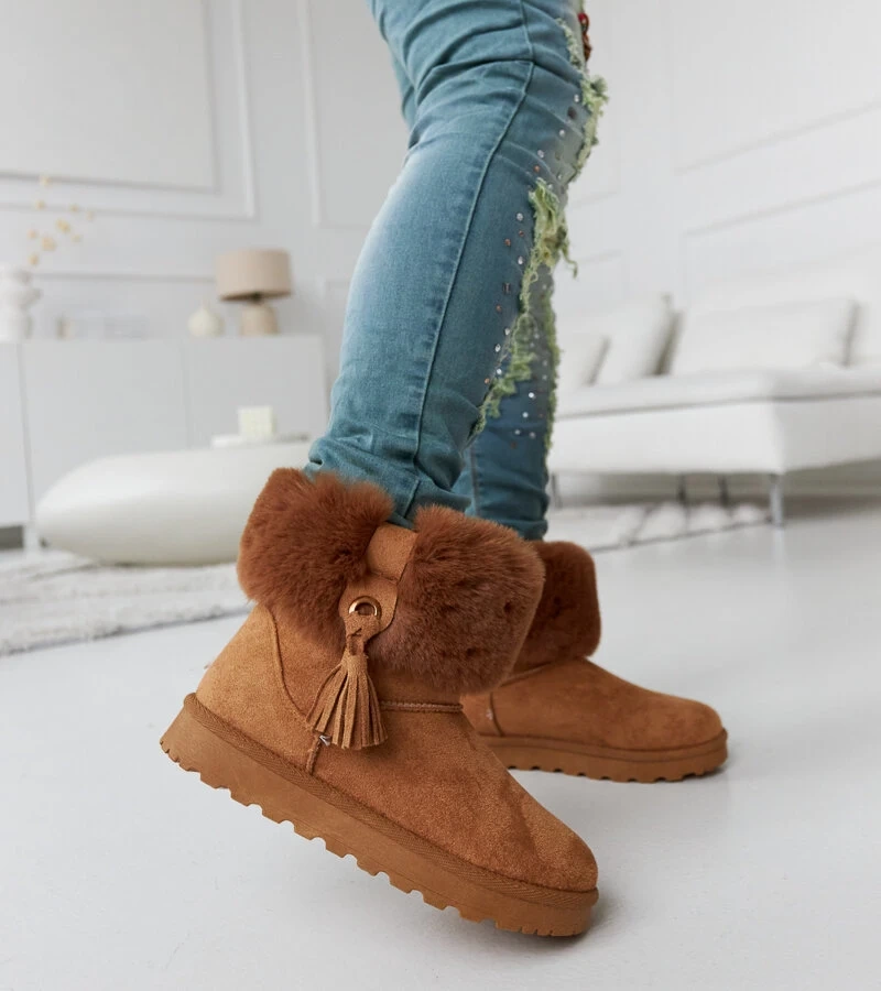 Camelowe zateplené snehové topánky s kožušinou Wren