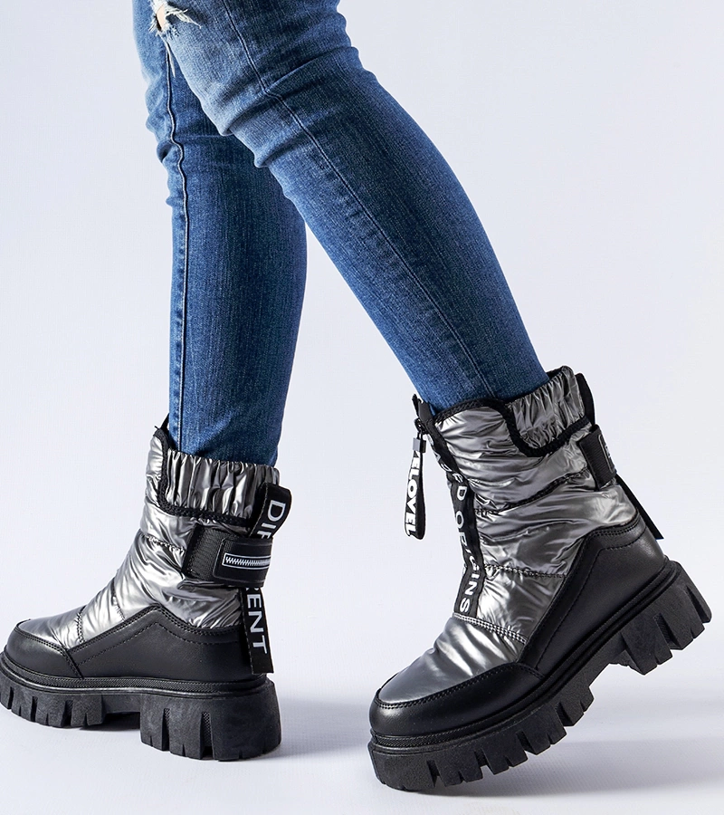 Čierne zateplené snehule s futrovým lemom Borgorato