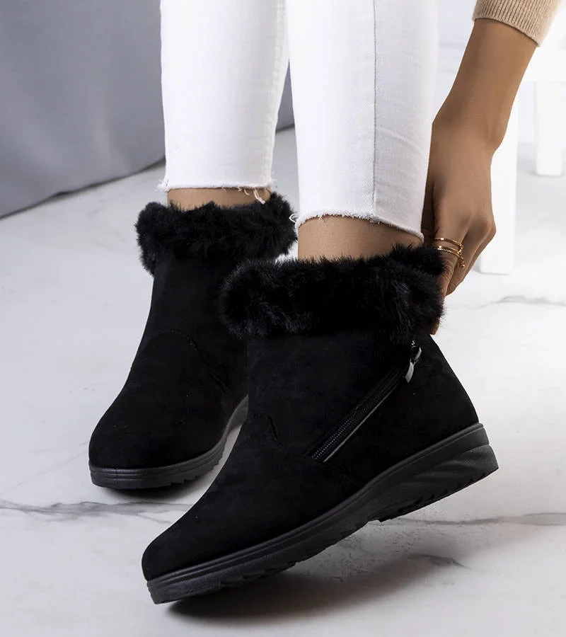 Čierne zateplené snehové topánky z umelej kožušiny od spoločnosti Crina