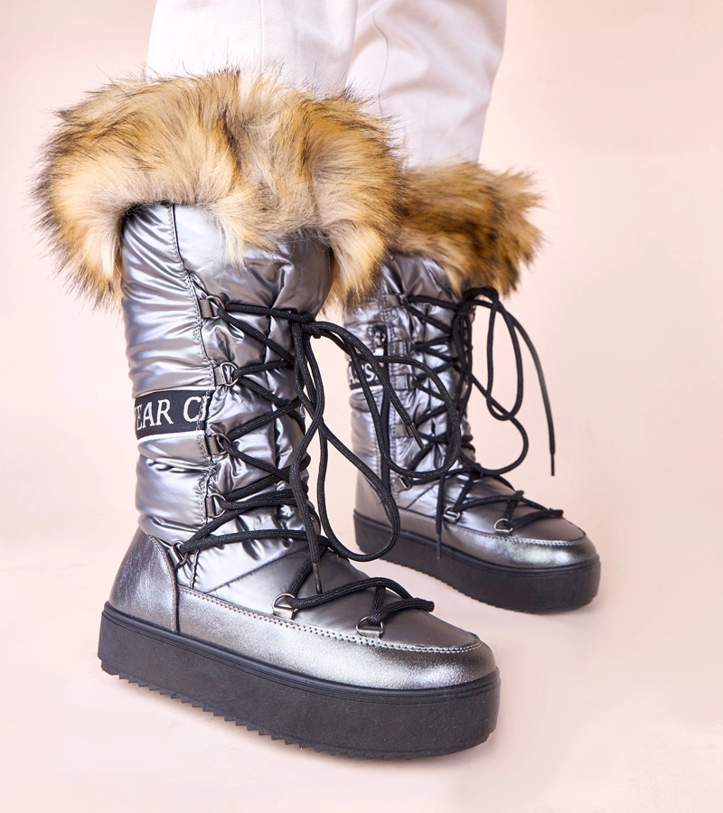 Strieborné snehule s ružovým leskom šnurovacie s kožušinkou Alison