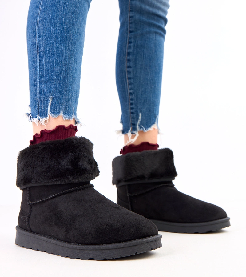 Čierne krátke snehule zateplené kožušinou s gumou Eija