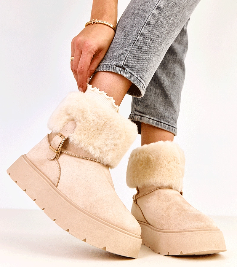 Béžové krátke snehule zateplené kožušinou s gumkou Eija