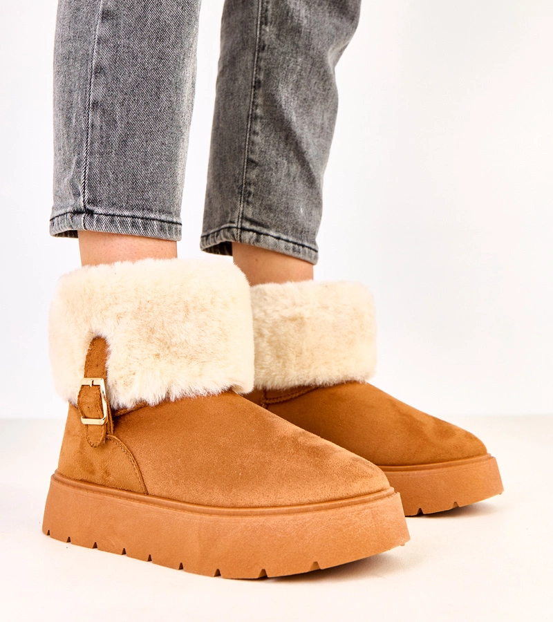 Hnedé nízke snehule na platforme z ekokože Reinol