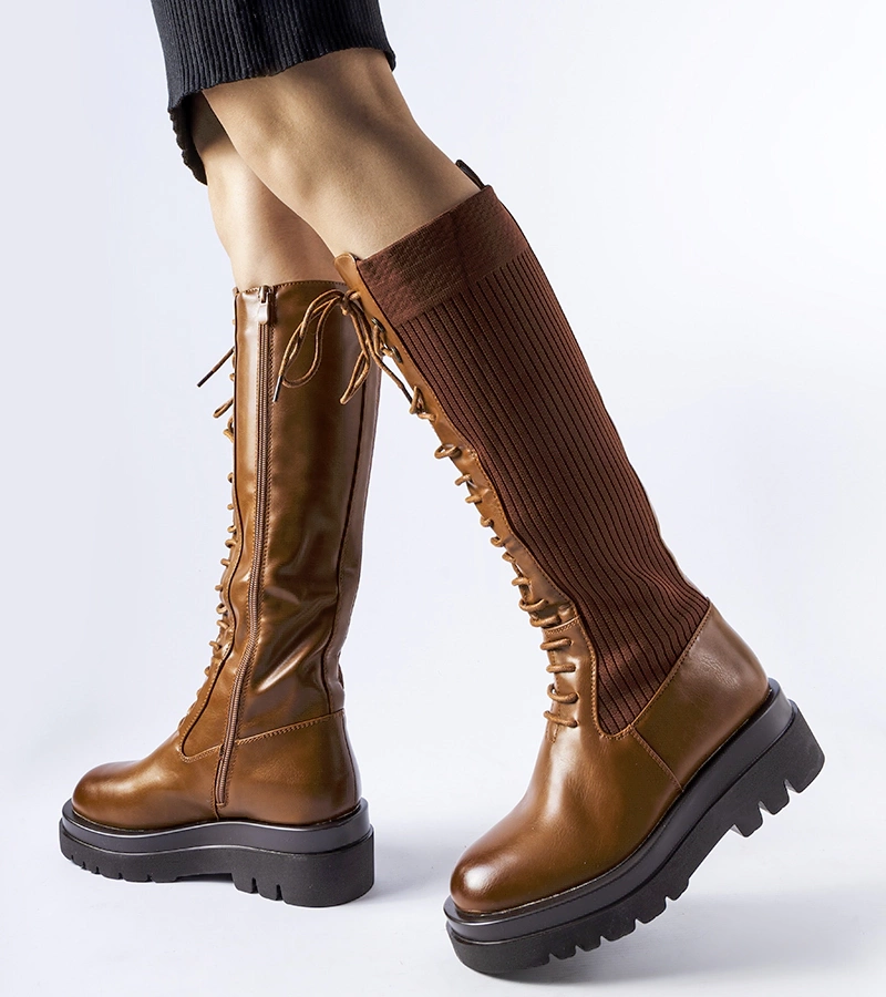 Hnedé ponožkové pracovné topánky s hrubou podrážkou Vitto