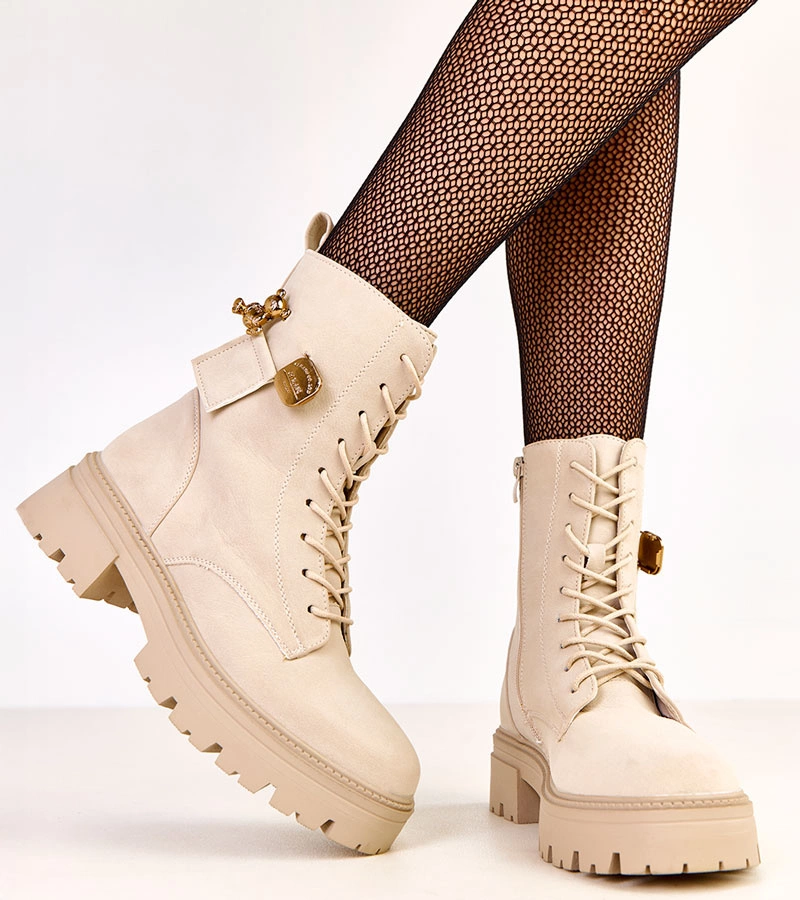 Béžové dámske trapery zdobené zlatým medvedíkom Valery