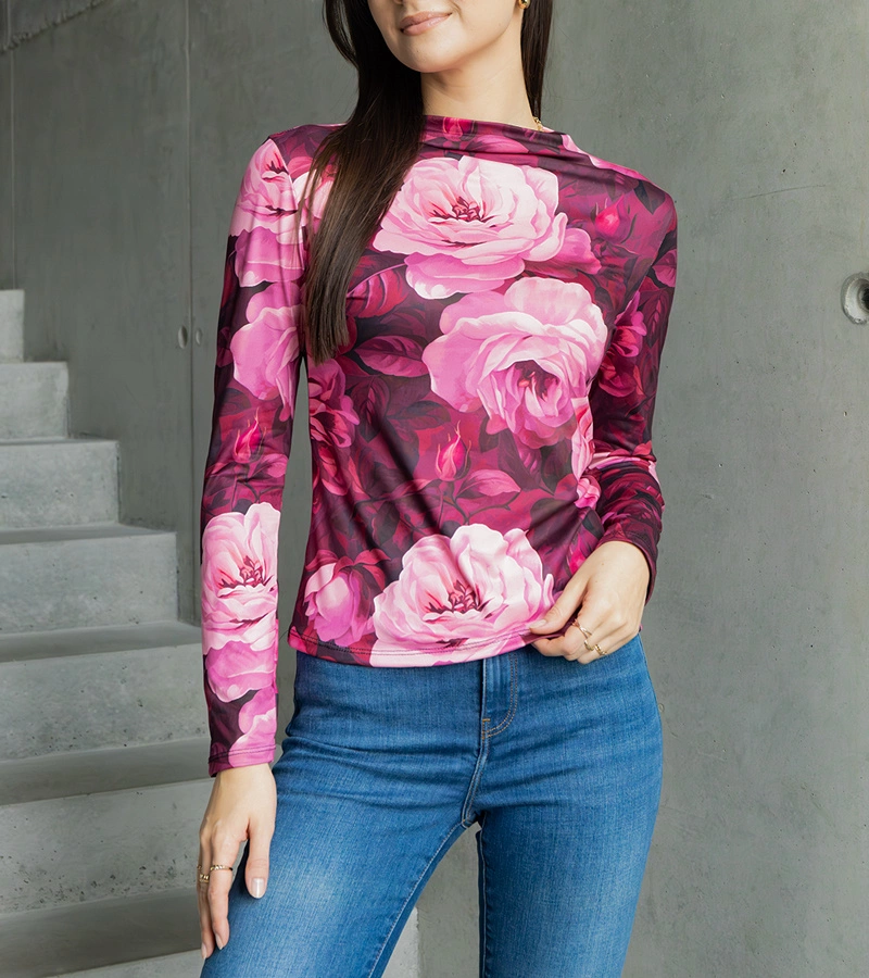 Dámsky fuksiový sveter s krátkym rukávom ozdobné gombíky Shela