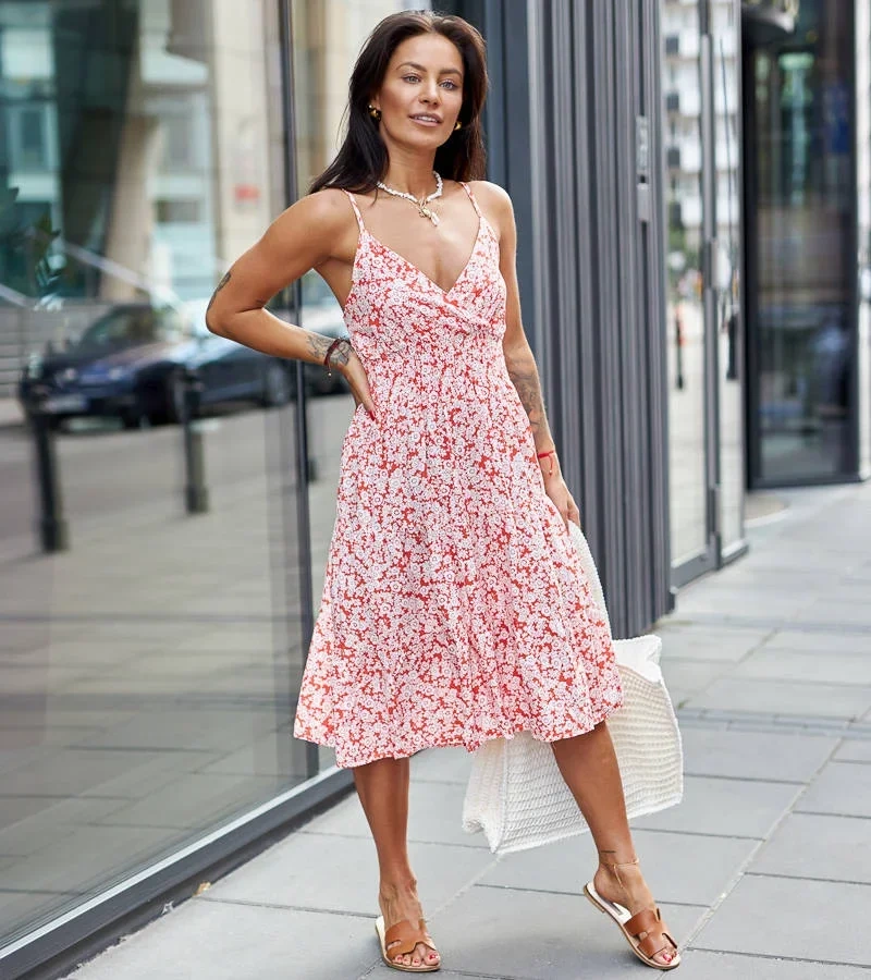 Šedé šaty na ramienkach s kvetinovým vzorom Attilio