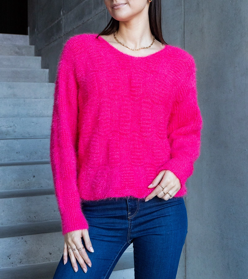 Ciemnozielony sweterek z dekoltem Neveri po słowacku to: "Tmavozelený sveter s výstrihom Neveri".