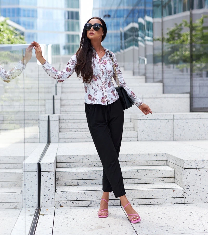 Biela košeľa s čiernymi pruhmi a krátkym rukávom Serrana.