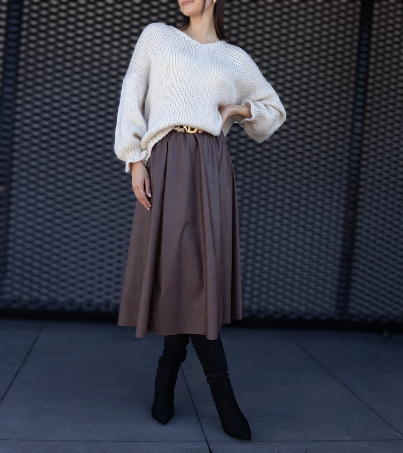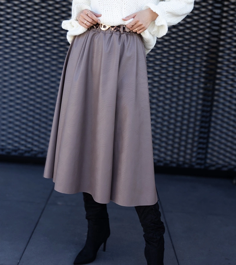 Tmavobežová dlhá sukňa zdobená opaskom s motívom zvierat Hanie.