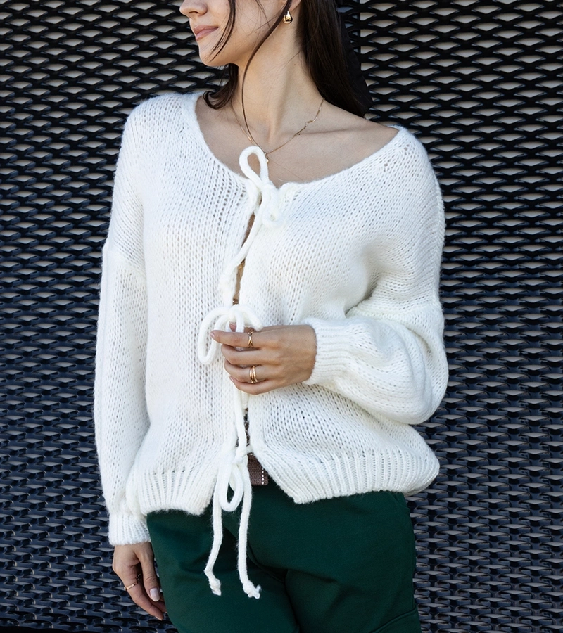 Biely klasický sveter vo voľnom strihu Essana.