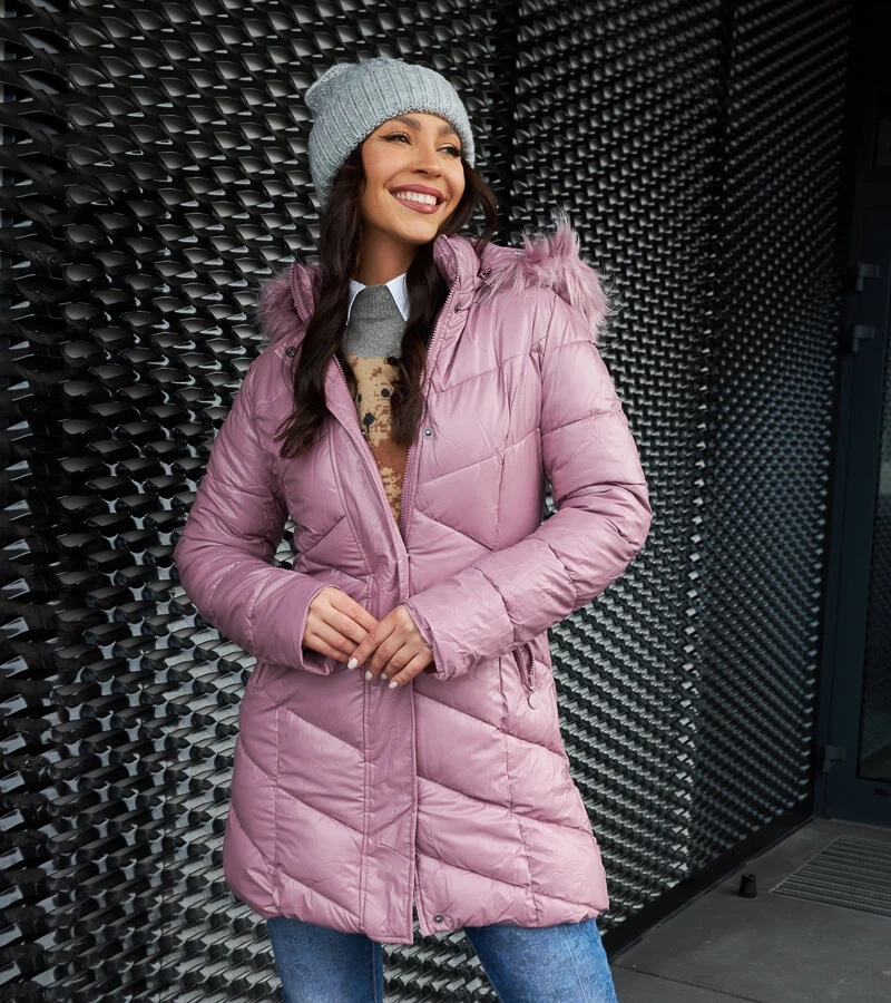 Ružová bunda s odopínateľným kožúškom Riverton H-898/38 PINK