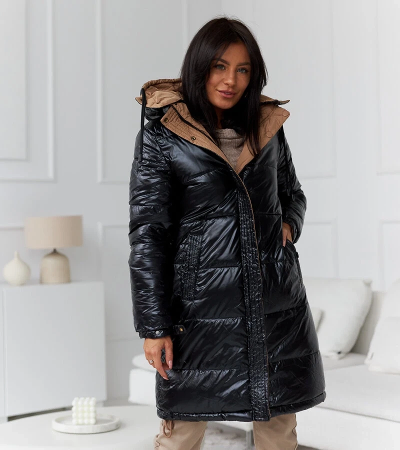Čierno-béžová teplá obojstranná bunda Scalette