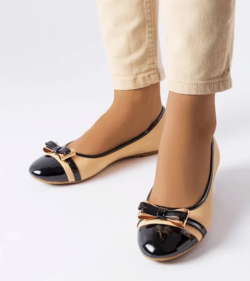 Čierno-béžové balerínky s mašľou od Dufour