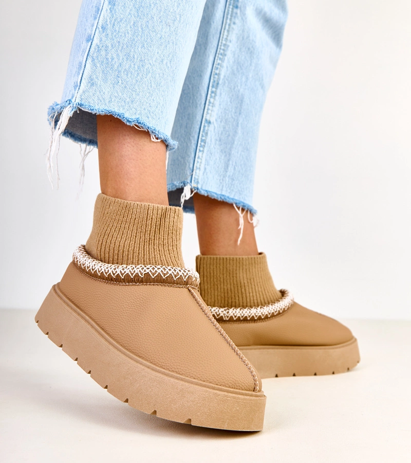 Béžové dámske snehule s ozdobnou šnúrkou Temira