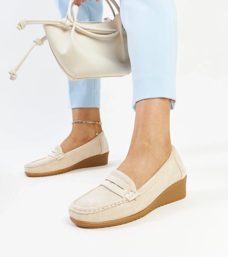 Svetlo béžové semišové mokasíny na platforme Sakena