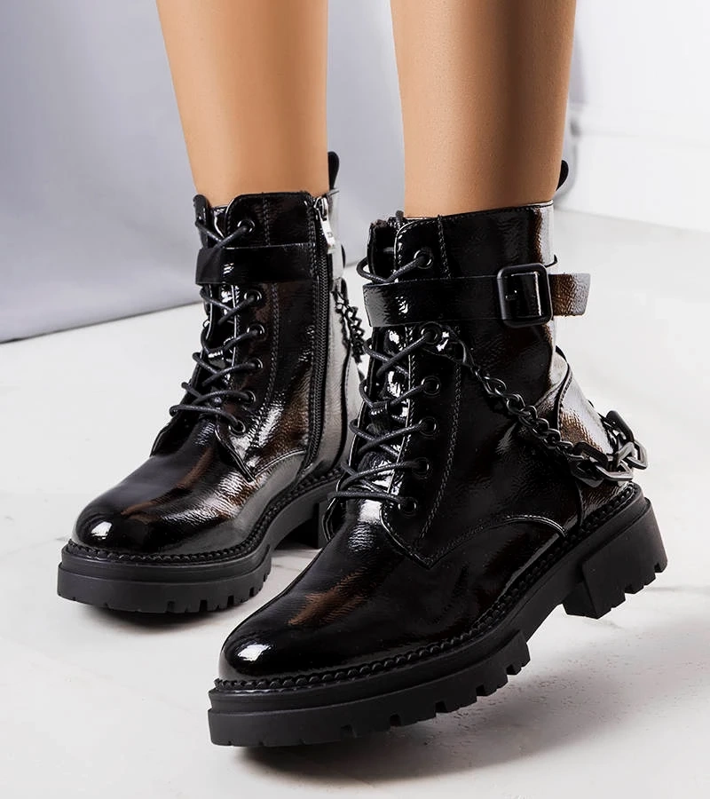 Čierne lakované lodičky s ihličkovým podpätkom Peet
