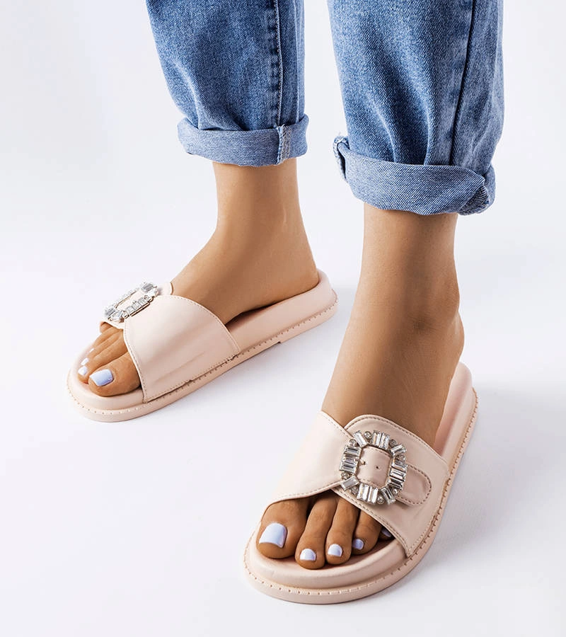 Sandále Carolos so zirkónmi na podpätku v béžovej farbe
