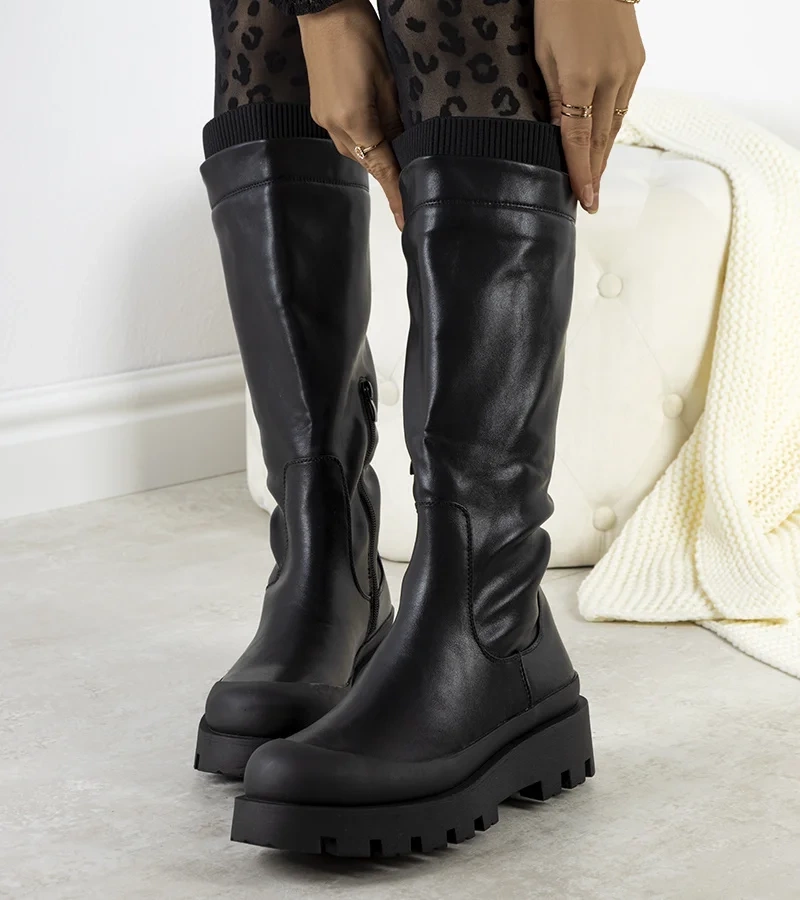 Čierny vysoký botki s vreckom Peralta