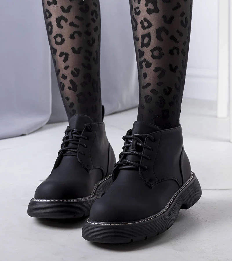 Čierne lakované traperské topánky od spoločnosti Edaline