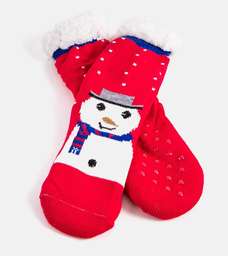 Červené zateplené ponožky so snehuliakom Challim