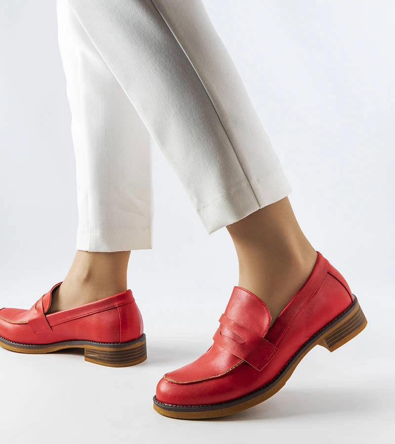 Červené mokasíny s matným povrchom od spoločnosti Sorel