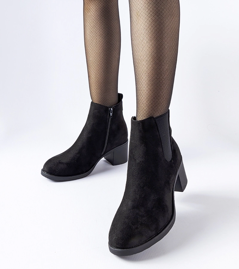 Čierne pokrčené čižmy z eko-semišu Angelico