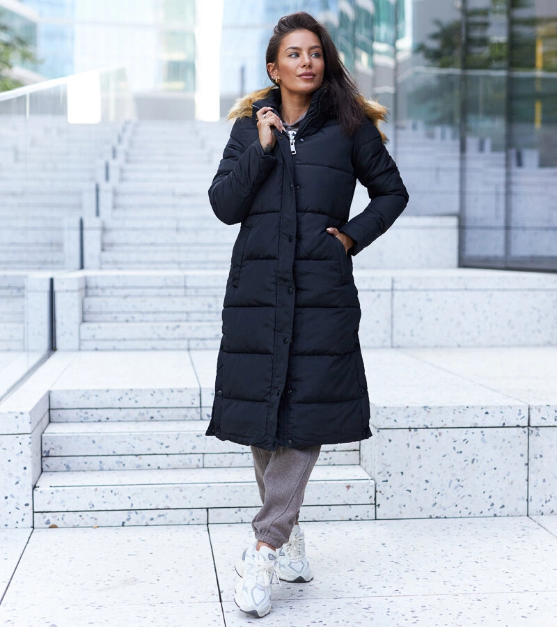 Námornícka modrá dlhá bunda s odnímateľnou kapucňou Fela